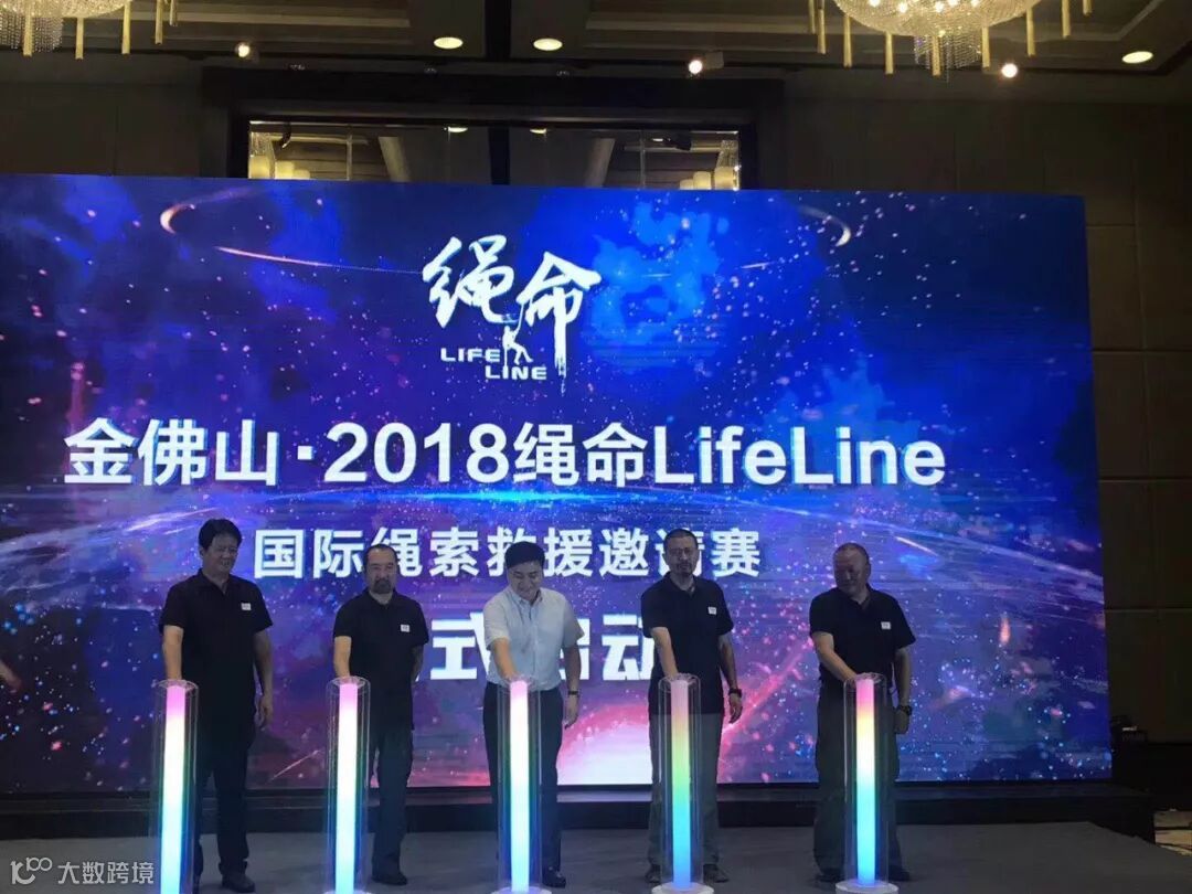 南川区区委副书记张孝卫、AST中国公司投资总监资儆吏、重庆奥悦冰雪公司总经理商兴洲、绳命赛事执行总监刘育新、绳命赛事安全总监孙克宁共同启动“金佛山·2018绳命LifeLine国际绳索救援邀请赛”。