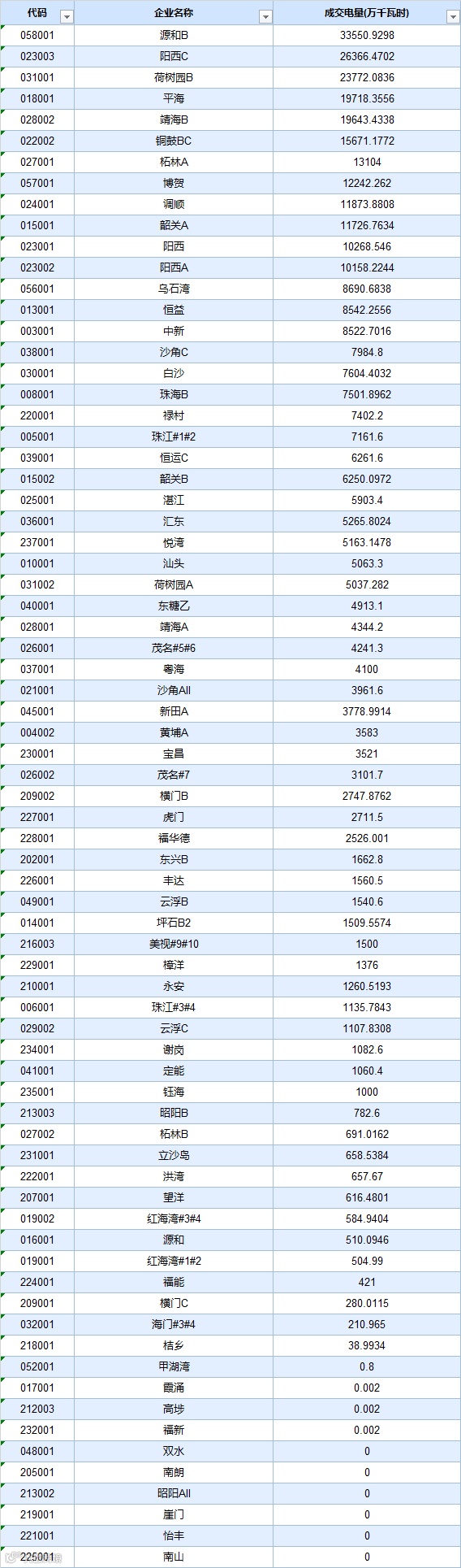 申报电量(万千瓦时)