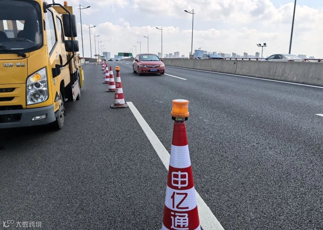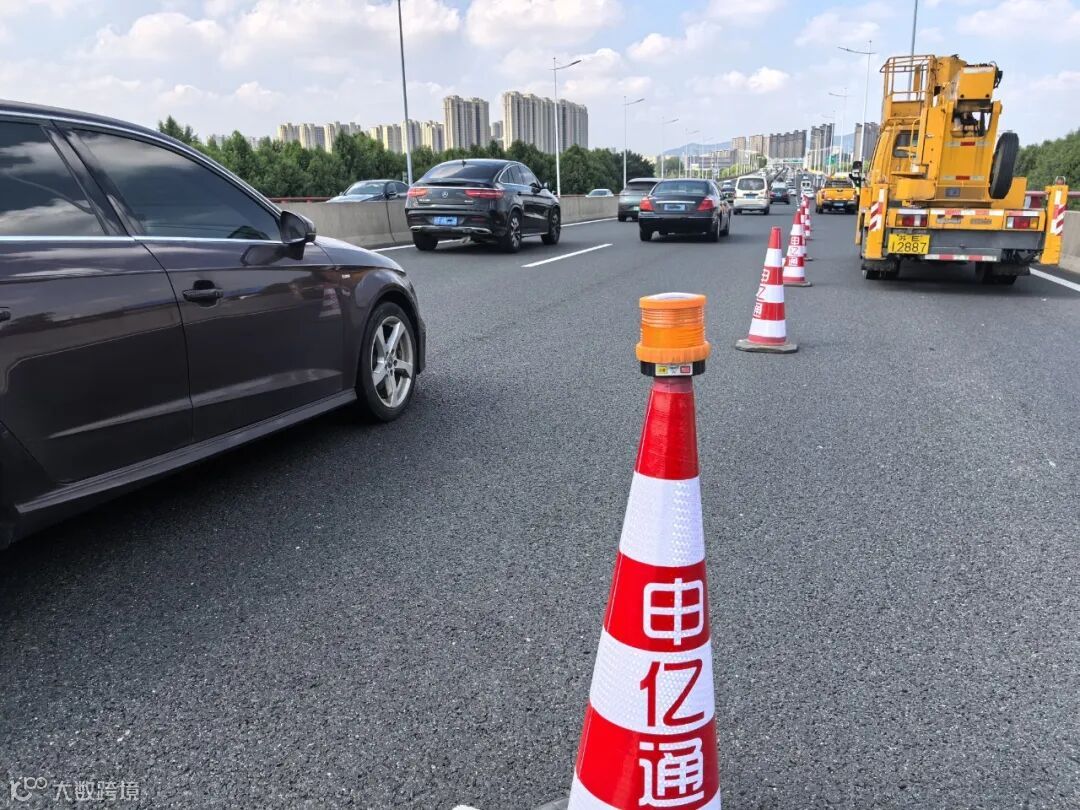 锥桶和防撞车的设置可以有效控制社会车辆的行驶路线和