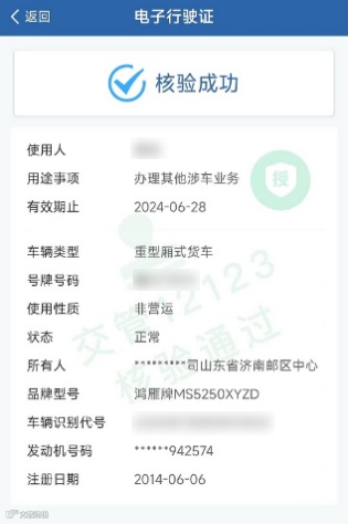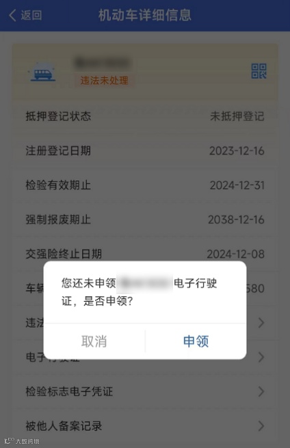 网上在线办理业务需要提交行驶证的,用户可选择下载电子行驶证图片。