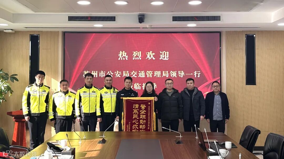 2月7日上午,苏州市公安局交通管理局领导及中环快速路管理大队领导一行莅临申亿通公司参观交流,对申亿通公司在警企联动工作中的表现给予了高度评价,并特别授予公司荣誉锦旗。