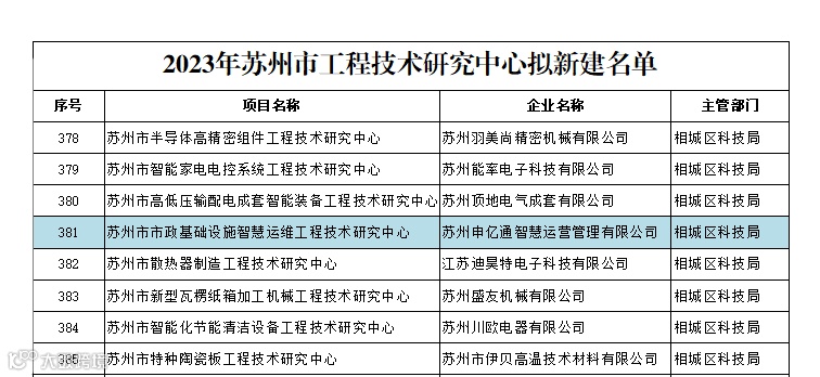 近日,根据《关于组织开展2023年企业工程技术研究中心建设工作的通知》,经单位自主申报、主管部门审核、市生产力促进中心复核等流程,申亿通公司“苏州市市政基础设施智慧运维工程技术研究中心”顺利通过2023年度苏州市工程技术研究中心新认定。
