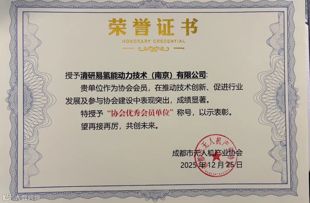 作为成都市无人机产业协会会员,易氢动力由其总经理任伟代表受邀出席此次大会。在大会上,易氢动力荣获“协会优秀会员单位”称号。这是对公司在低空经济领域的引领作用及促进行业协同创新贡献的高度认可。作为会员单位,易氢动力积极参与协会工作,深化协作,共同推动无人机产业高质量发展。