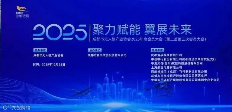 2025年12月25日,成都市无人机产业协会2025年度会员大会在青羊航空新城成功举行。会议围绕“聚力赋能,翼展未来”主题展开。省、市、区相关部门领导、行业专家、兄弟协会代表及近200家会员单位负责人齐聚一堂,共商成都无人机产业与低空经济发展大计。