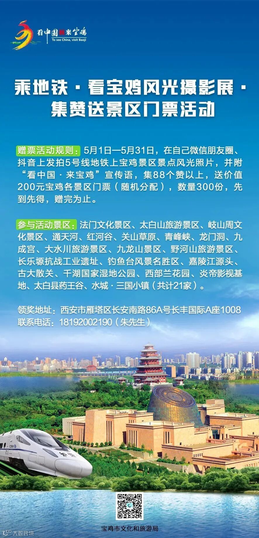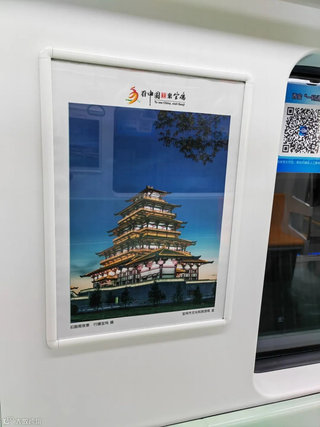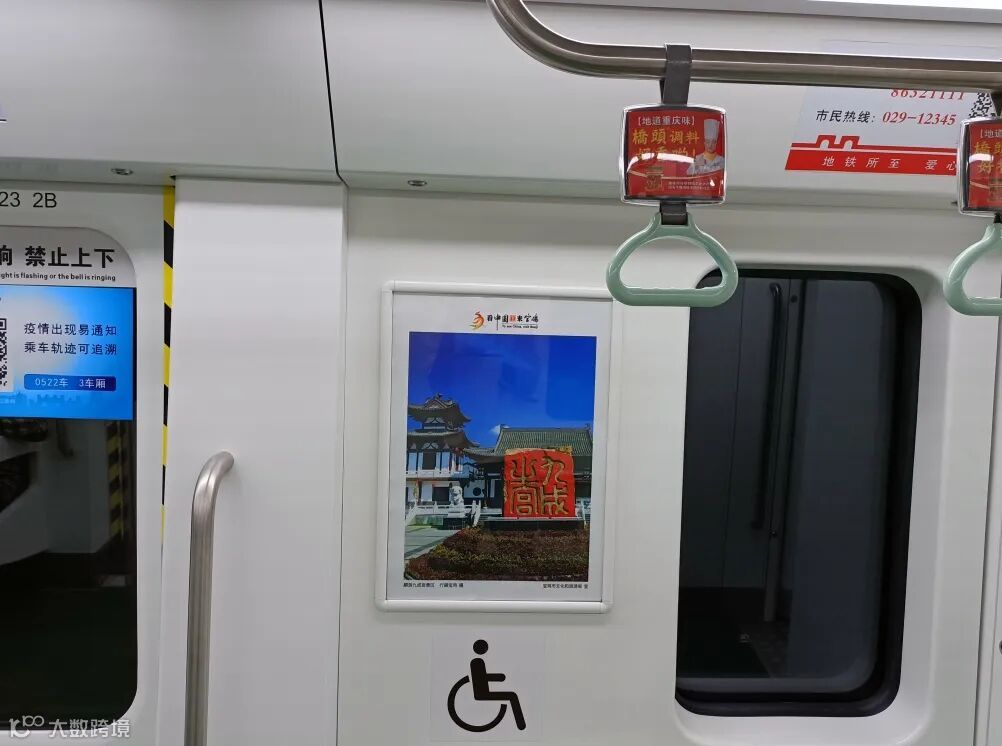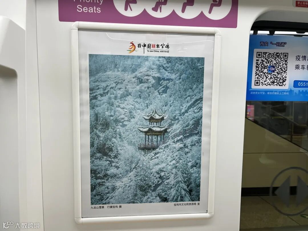 宝鸡市文化和旅游局本次活动宣传,在西安地铁5号线车厢内两侧看板广告位投放了300余幅宝鸡景区景点的风光照片(4列地铁、每列76幅)。