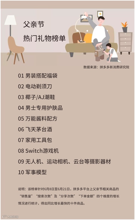 拼多多发布《父亲节热销商品榜单》,热销第一为男装搭配福袋