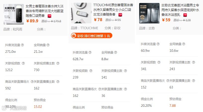 接下来,我们以商品排行榜周榜NO.1的“固体香膏”为例,分析它是怎么在抖音走红的。
