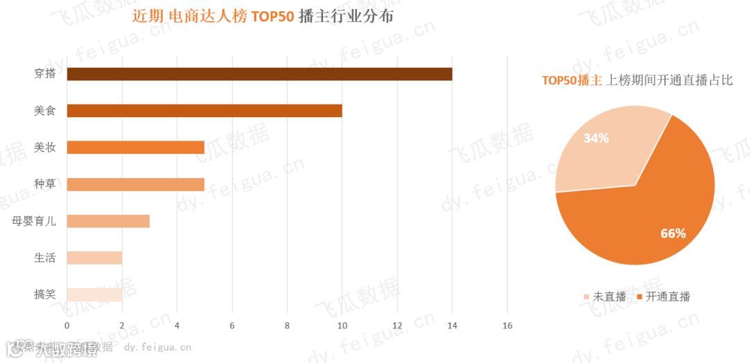 而同时我们发现,在上榜播主近70%的播主都有直播带货数据,可见现在已经有不少播主通过直播推广商品,赚取佣金。