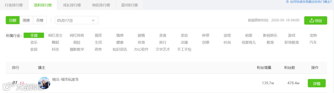 登飞瓜数据抖音版涨粉日榜首位