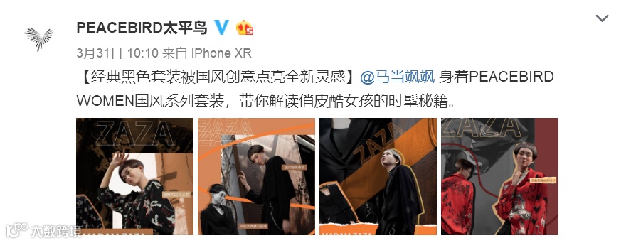 太平鸟X花木兰联名款发布之后,有网友在微博发出这样的感叹。