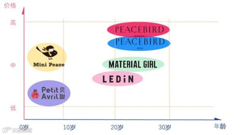 如今太平鸟形成了定位20-30岁的核心品牌太平鸟女装(Peacebird Women)、太平鸟男装(PeacebirdMen);定位15-25岁的新兴品牌乐町(Ledin)、拜金女孩(Material Girl);定位0-10岁的童装品牌Mini Peace、贝甜童装等多品牌构成的“太平王国”。