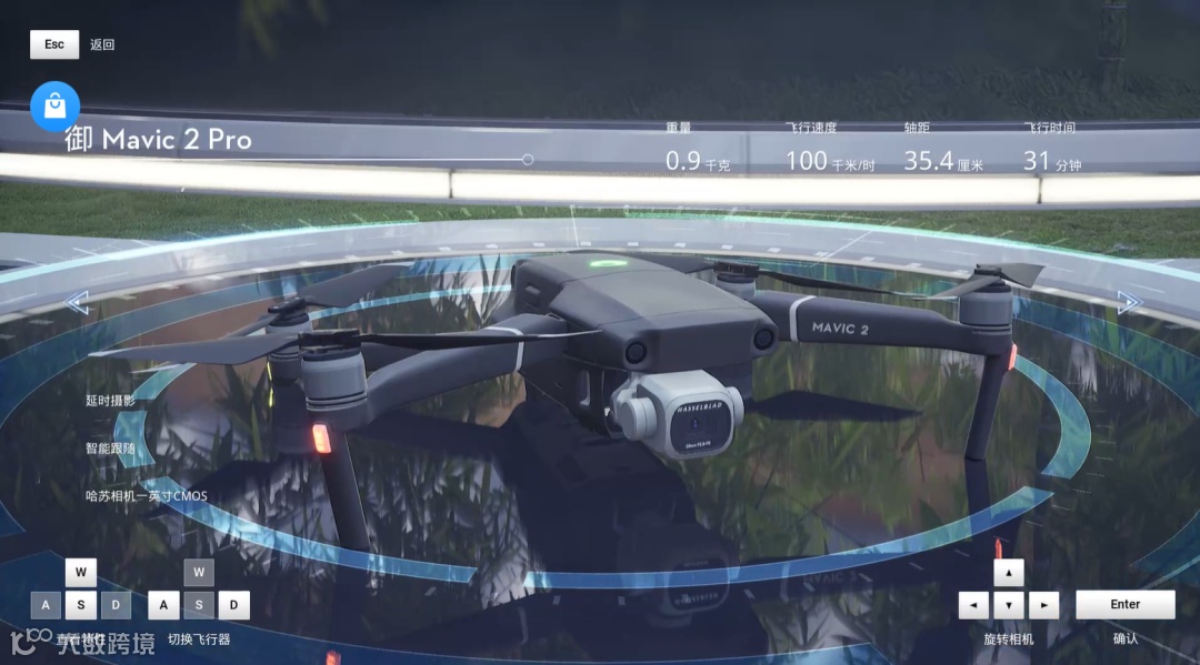 教学模式下,对每架无人机进行介绍,有重量、飞行速度、轴距和飞行时间等固定参数,也有该机型的特点和闪光之处。