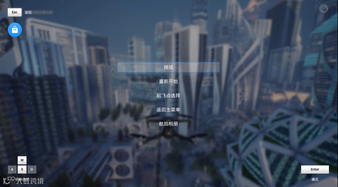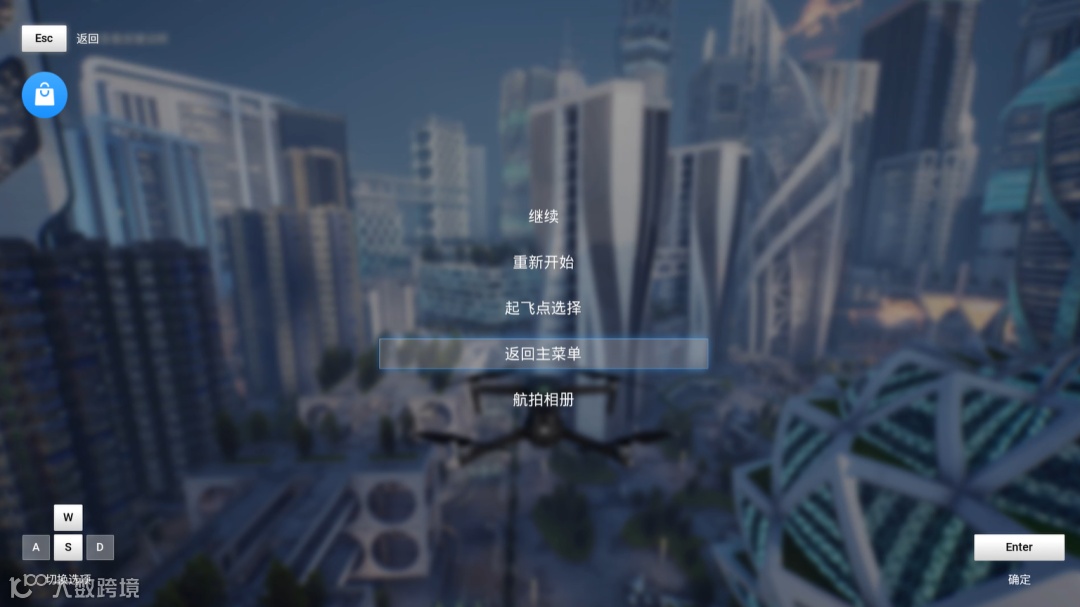可以选择,重新开始、继续、起飞点选择、主菜单和航拍相册