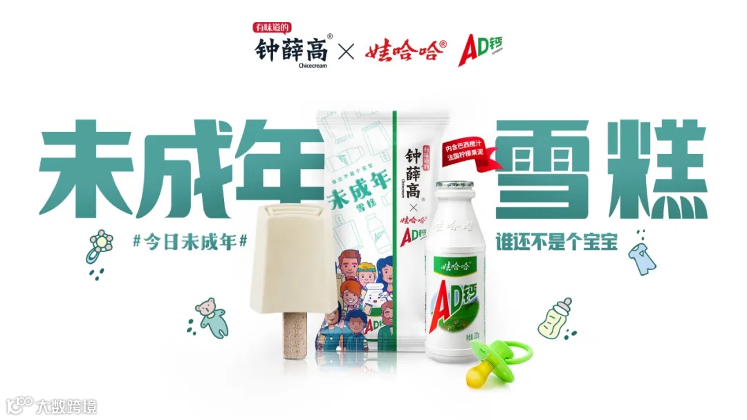 3月26日,娃哈哈AD钙奶与钟薛高联名推出AD钙奶味雪糕“未成年雪糕”,新品拥抱的主要用户圈层是已经长大、但“不想长大”的成年人,以及Z世代们。