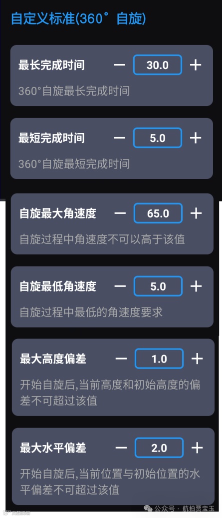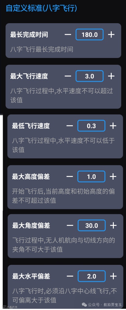 下图是自旋和八字的限定标准(截图来源于“无人机电子考评”APP)