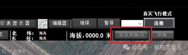 c.设置返航点为某个航点,点击右上角的这个设置返航点按钮,填写返航点的经纬度(复制某个航点经纬度即可),点击设置(这里有可能要点取消,根据考官要求来,因为设置返航点后有的飞机可能会出现异常,让考官知道你知道怎么操作就可以了,教练在一旁也会说的);