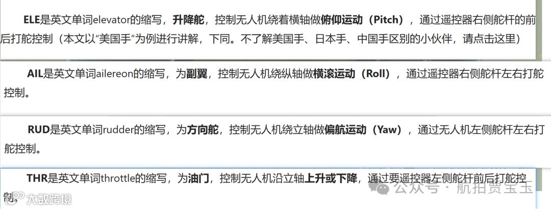 通道名称跟平常熟悉的不太一样,这里的通道名称都是按照民航飞机的命名来命名的,教练在教学时也是按照通道名称来指导的,所以要熟悉建立下意识记忆,具体对应如下(以美国手为例):