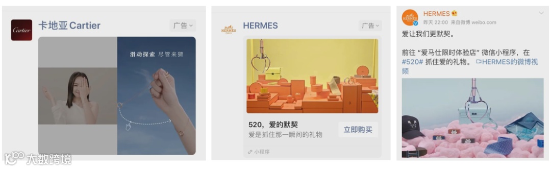 大家应该也有留意到,大概从3月份开始,微信朋友圈的奢侈品品牌广告几乎一天一款不间断播放,卡地亚、Hermes等等频繁出现。