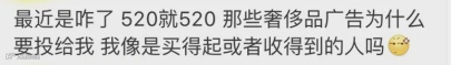 不管是不差钱的奢侈品专业户,还是像小编这样的上班族,奢侈品品牌广告好像被无差异辐射到了所有人的朋友圈,当然,这也引起了一部分人的吐槽。