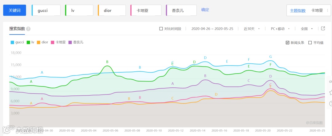 这次霸屏520的奢侈品中,我们以Gucci为例,聊聊奢侈品在520的动作以及社媒平台的布局,因为我们发现在百度指数中对比一些奢侈品品牌,Gucci的声量也是相对而言最高的。