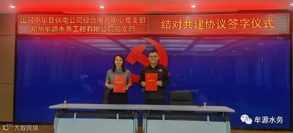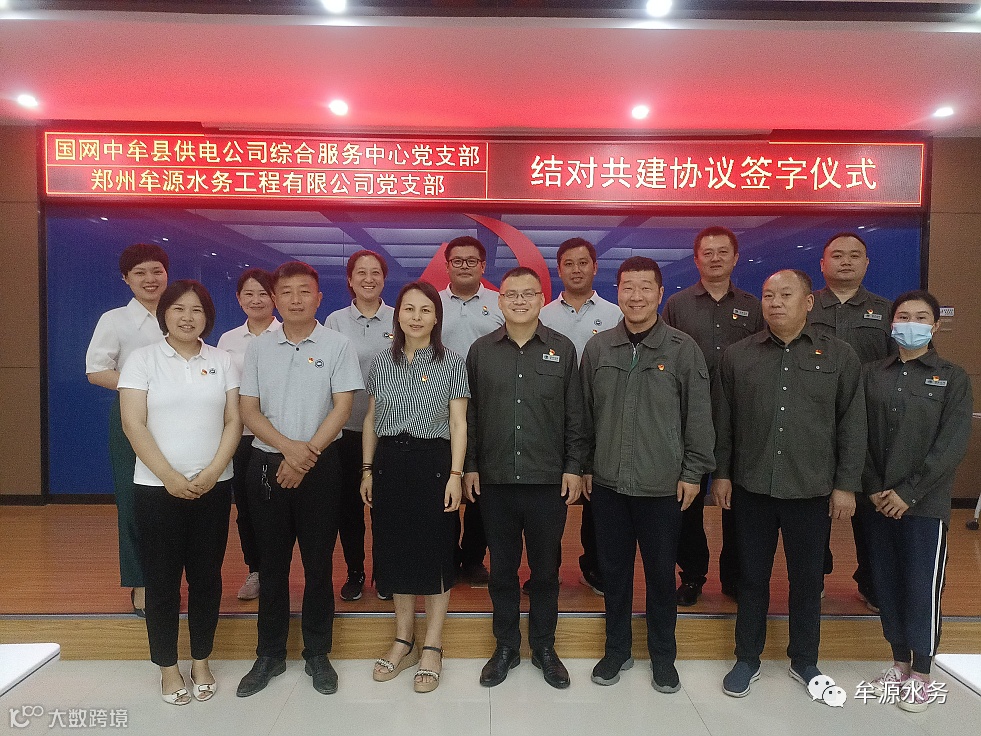 “七一”建党节前夕,为深入开展“能力作风建设年”活动,实现“组织共建、活动共办、双向互促、共同提升”新局面,6月29日,郑州牟源水务工程有限公司党支部与国网中牟县供电公司综合服务中心党支部举行了以“结对共建聚合力 携手同心保民生”为主题的结对共建签约仪式,共同签订“水电共建”协议书。