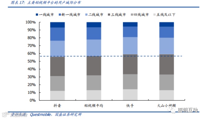 相比于抖音、西瓜视频等短视频平台,火山小视频的用户分布更加下沉。根据Questmobile在2019年6月的数据,短视频平台的三线城市及以下用户平均占比为56.7%。相比之下,抖音的下沉市场用户占比为55.9%;而火山小视频占59%,与快手相当。