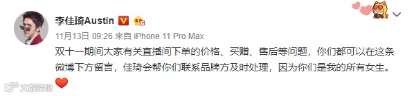 还有烈儿宝贝,双十一大战刚刚打响,大家都沉浸在购物大狂欢的时候,她却因预售机制设置错误1小时亏损上千万?事件发生后,有不少烈儿宝贝的粉丝主动替其发声,绝大部分粉丝表示理解,愿意拍下其直播间的补差价链接。