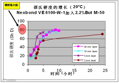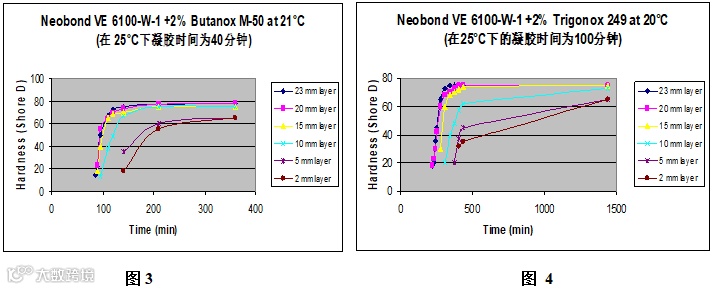 3.3 Butanox M-50和Trigonox 249在不同胶厚时的邵氏硬度增长