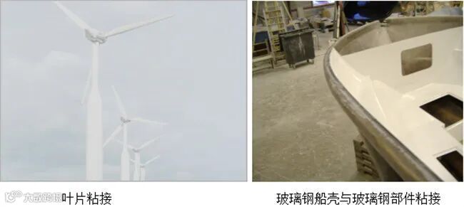 此结构胶适于不饱和树脂和乙烯基树脂制成的复合材料, 也适用市面上通用的环氧树脂和一些金属。