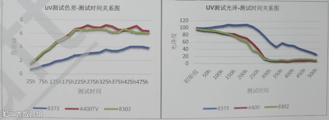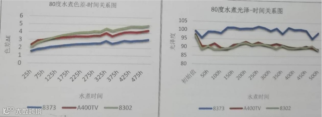 可以看到,对于胶衣,无论是湿热老化(80度水煮模拟)还是室外暴晒的UV老化,间苯新戊二醇类型的基体(8373)比普通间苯或者混合型的基体要优秀得多。