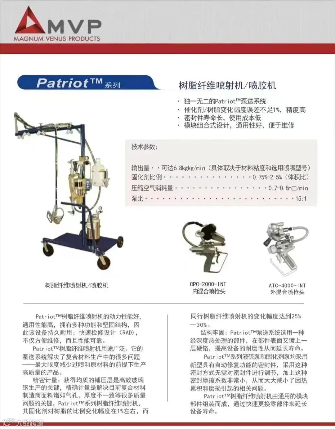 MVP树脂纤维喷射设备的亮点简评