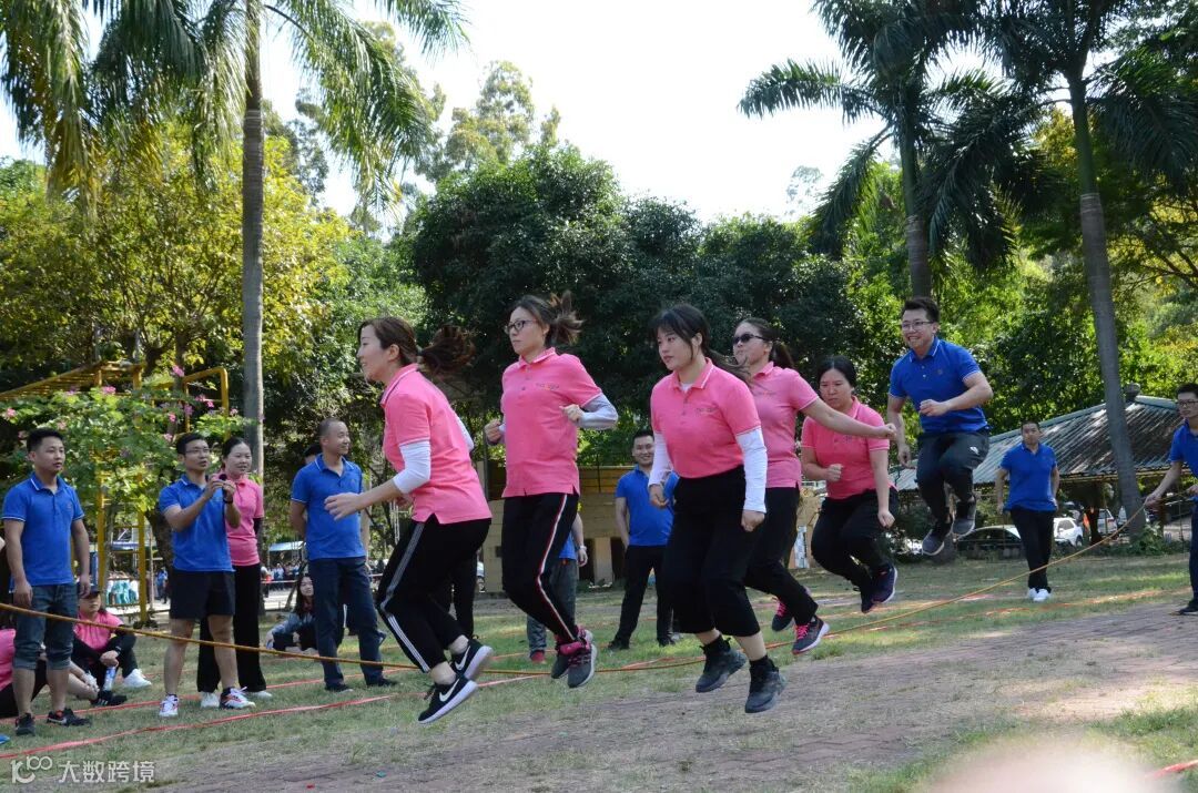 这是个考验团队默契与耐力的项目,六人同跳以单次数量最多的小组为胜!