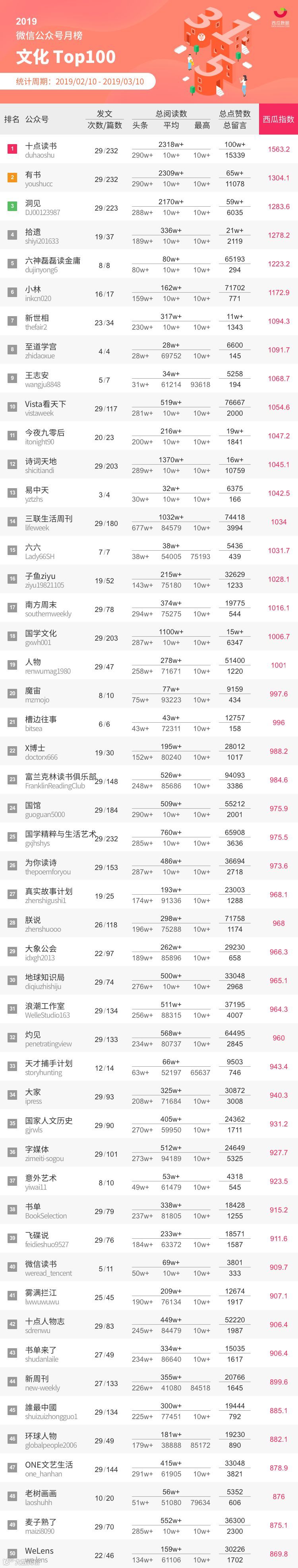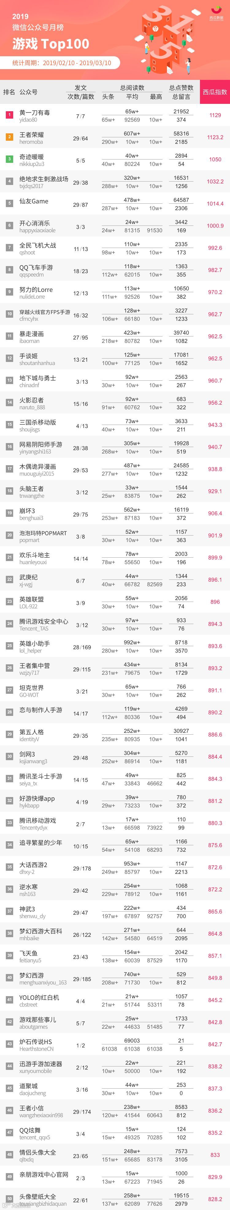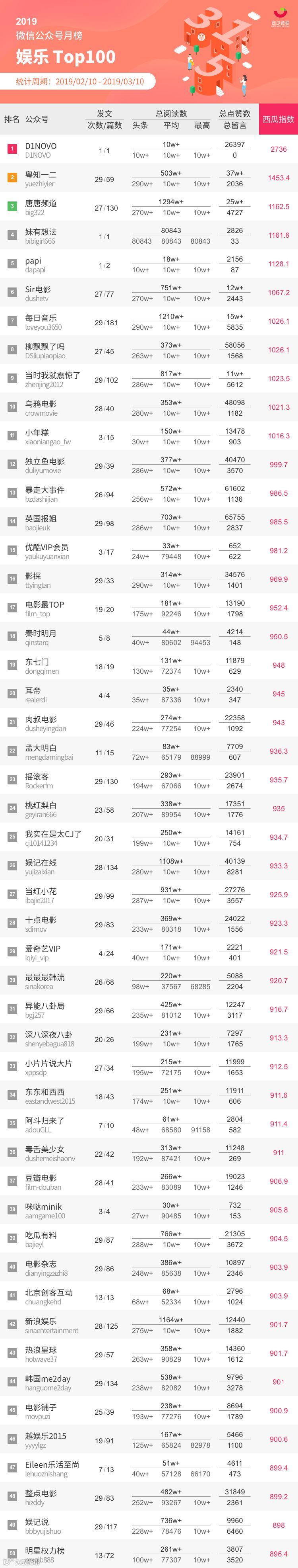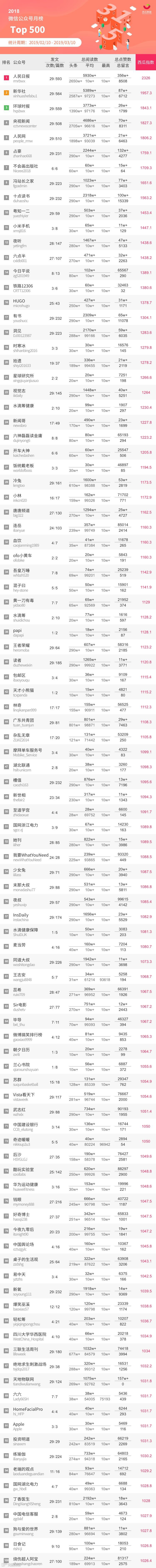 这次我们推出2月份全网热门公众号的排行榜,涉及20个热门垂直的行业中西瓜指数排名前100的优质公众号,以及全网TOP500的公众号月榜数据。