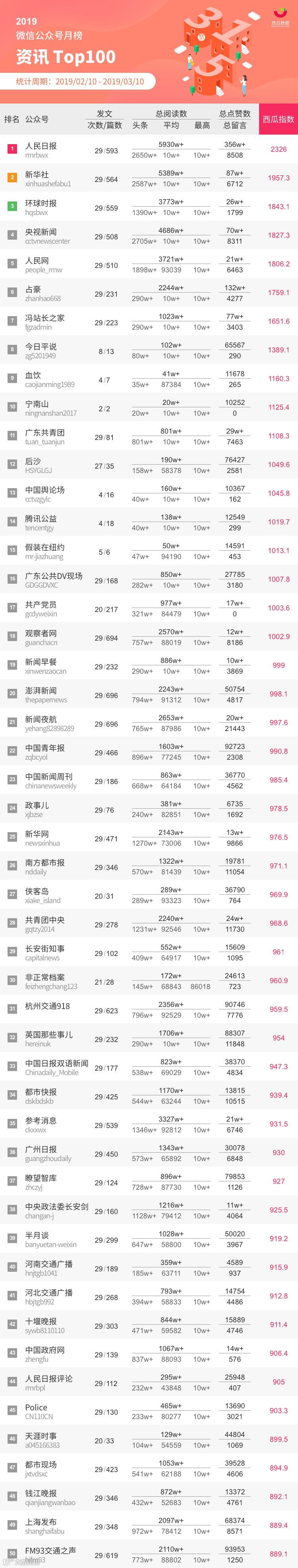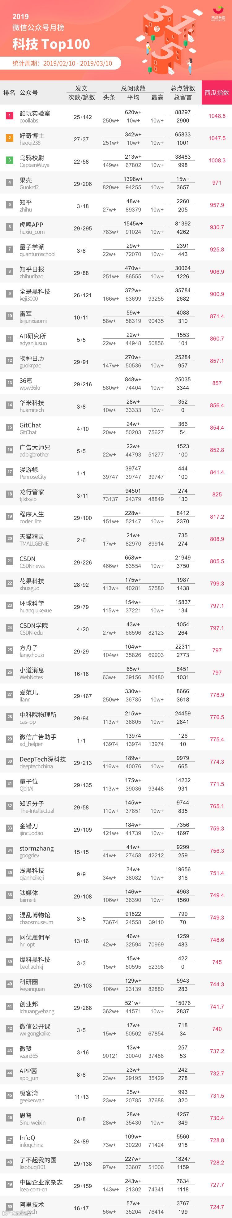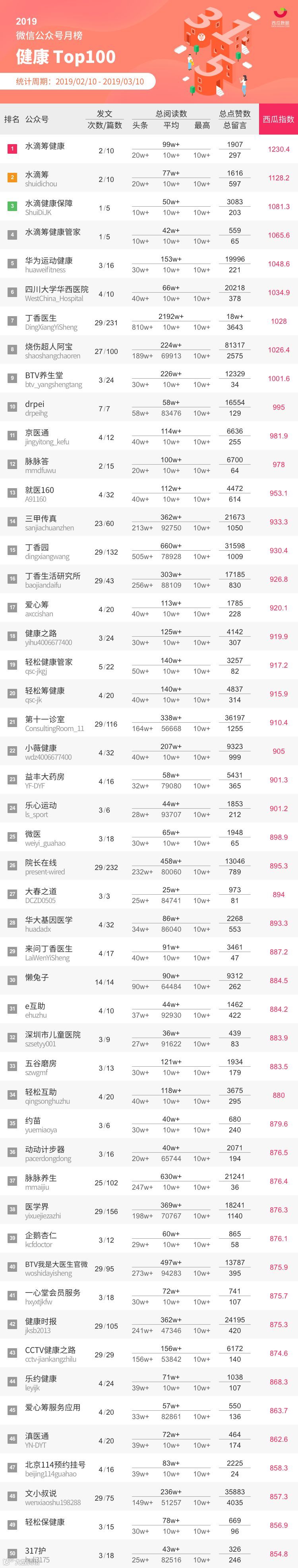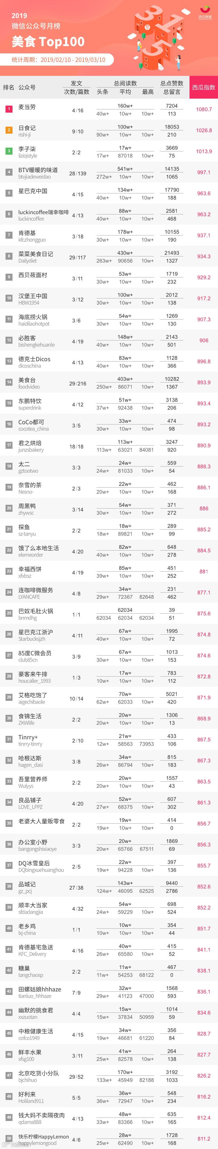 这次我们推出2月份全网热门公众号的排行榜,涉及20个热门垂直的行业中西瓜指数排名前100的优质公众号,以及全网TOP500的公众号月榜数据。