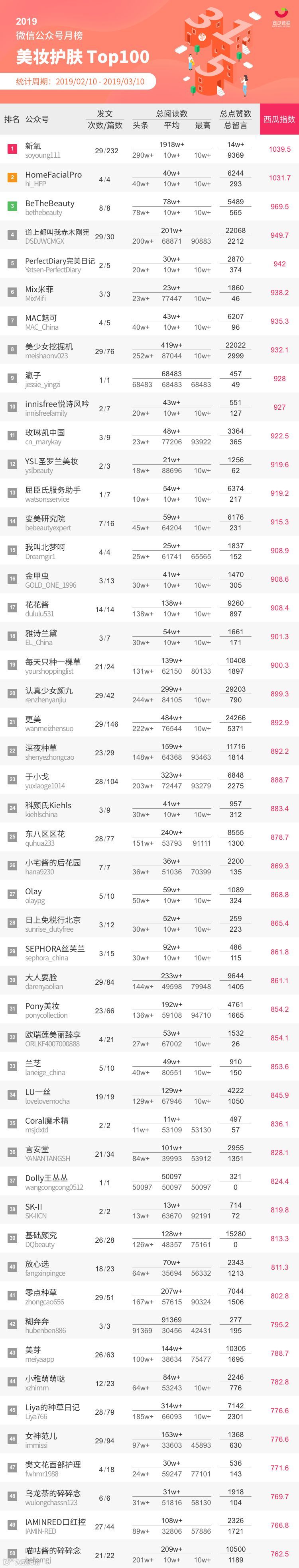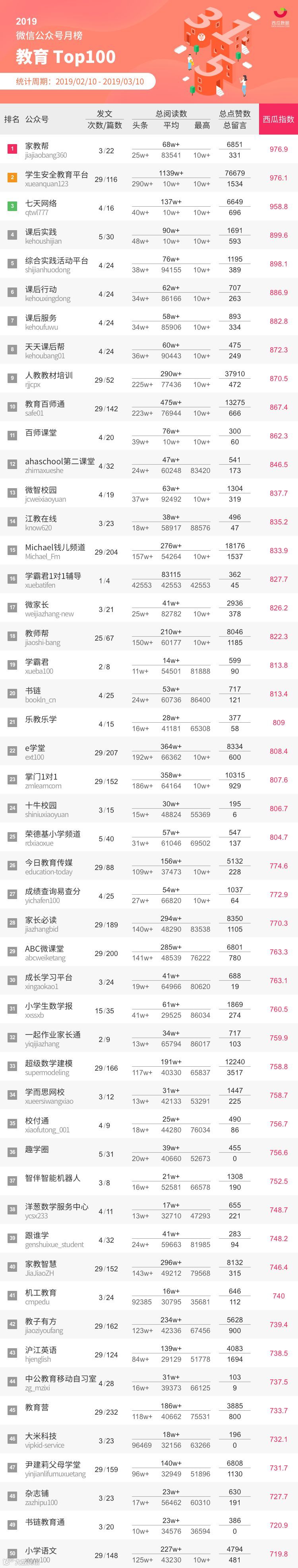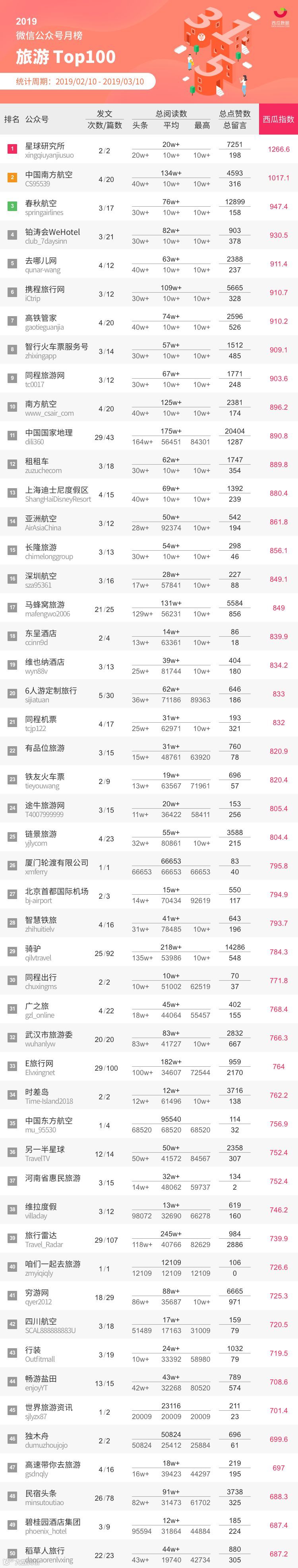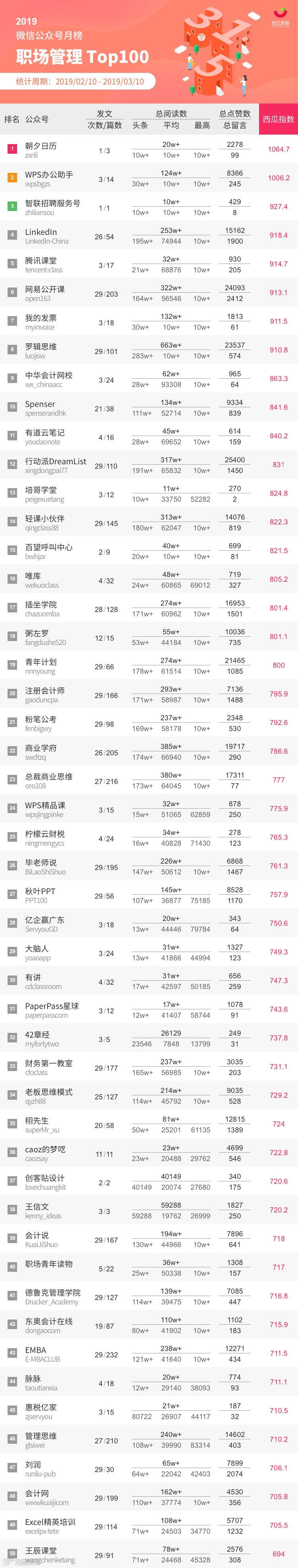 这次我们推出2月份全网热门公众号的排行榜,涉及20个热门垂直的行业中西瓜指数排名前100的优质公众号,以及全网TOP500的公众号月榜数据。