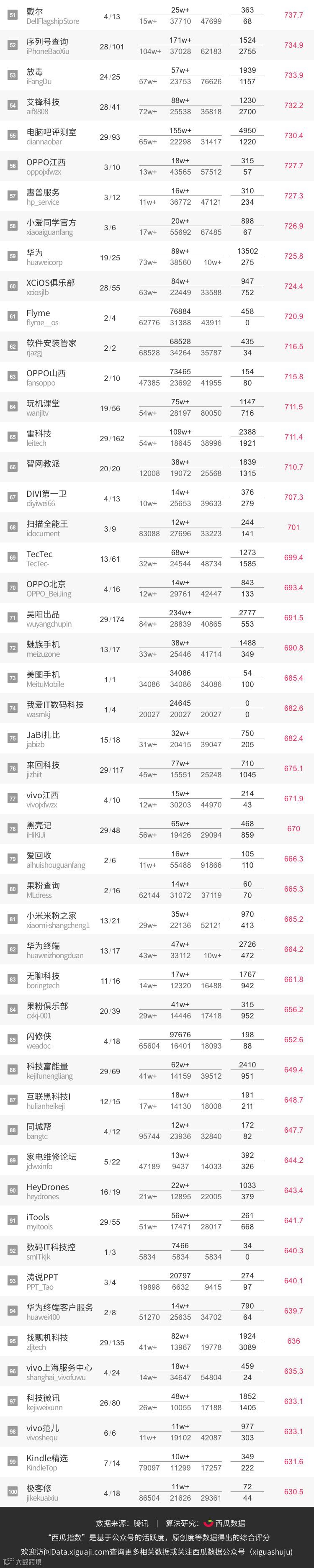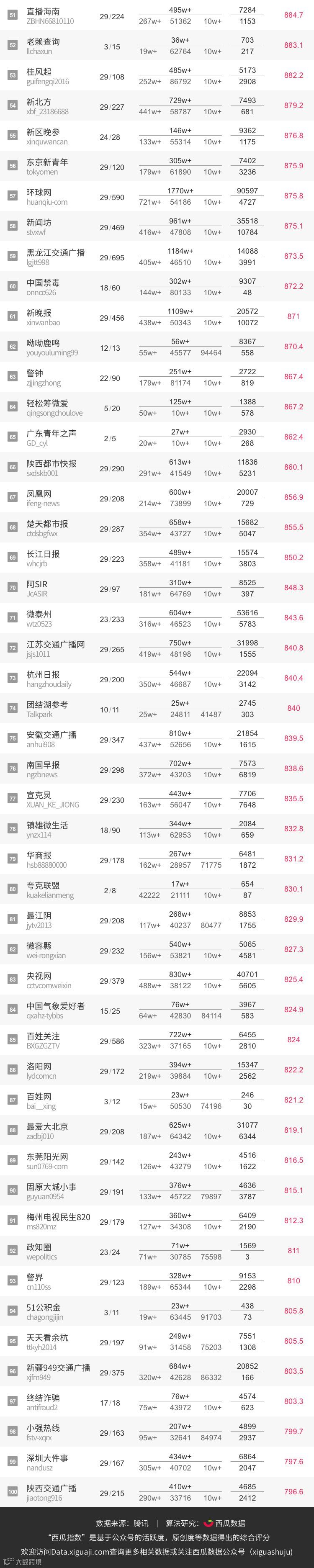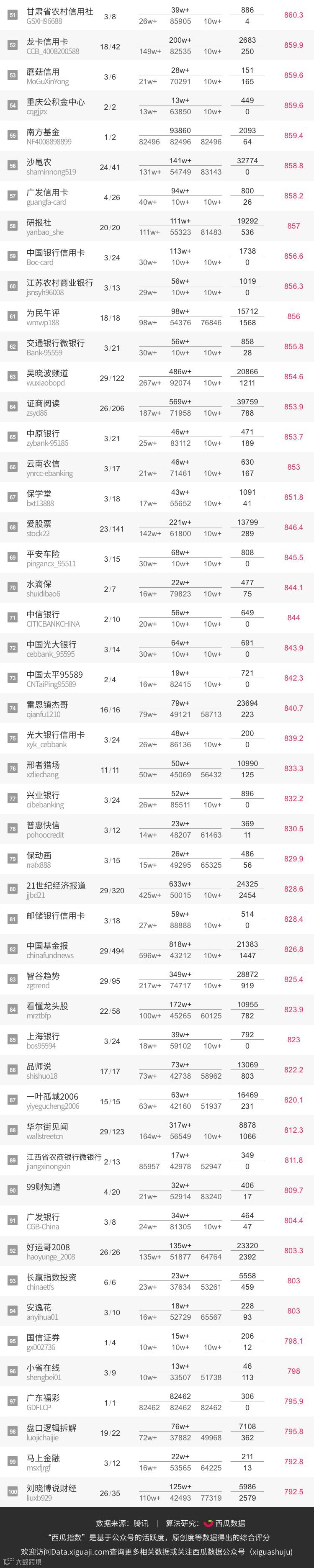 此次榜单排名依据西瓜指数高低进行,西瓜指数不仅仅根据公众号的图文阅读量进行评定,而是根据粉丝粘性指标、内容质量指标、粉丝质量指标、影响力属性指标、风险指标、公众号活跃指标等六个维度综合评估公众号影响力。