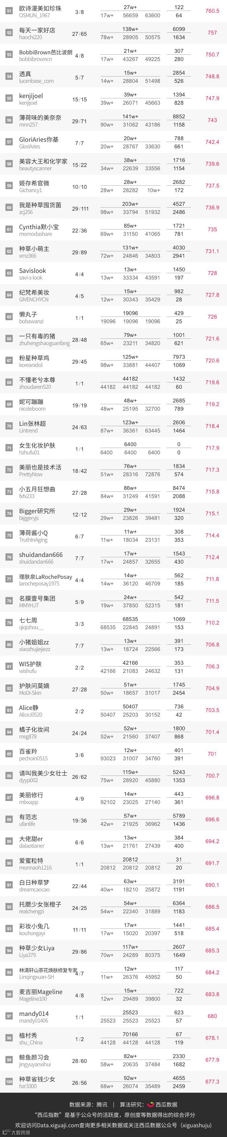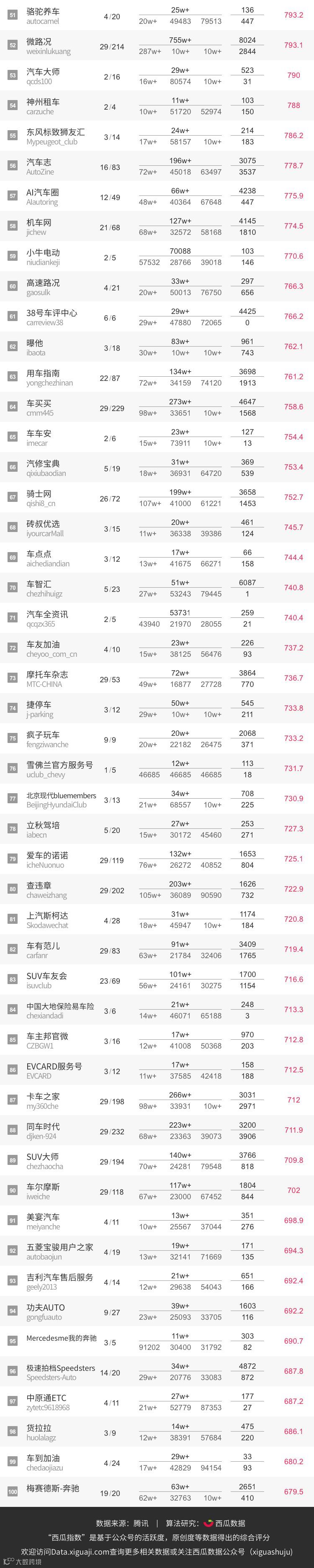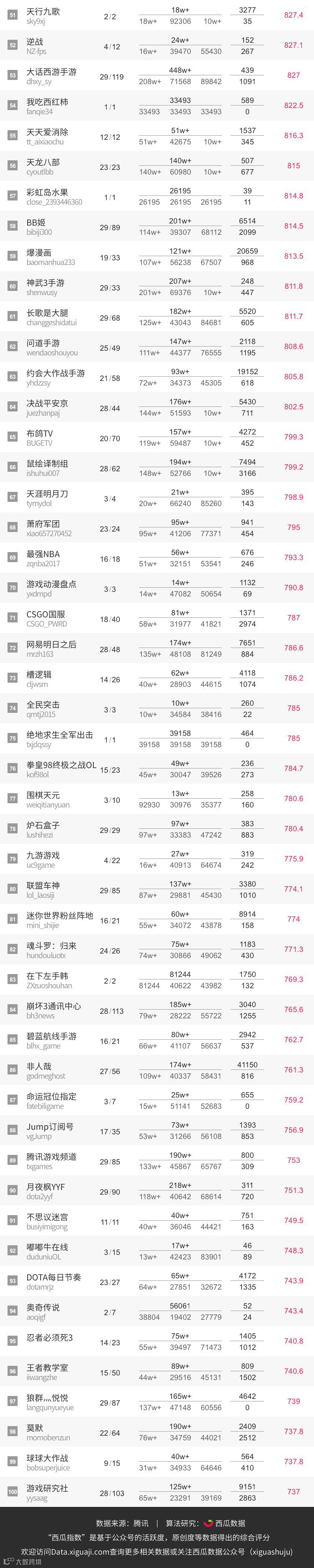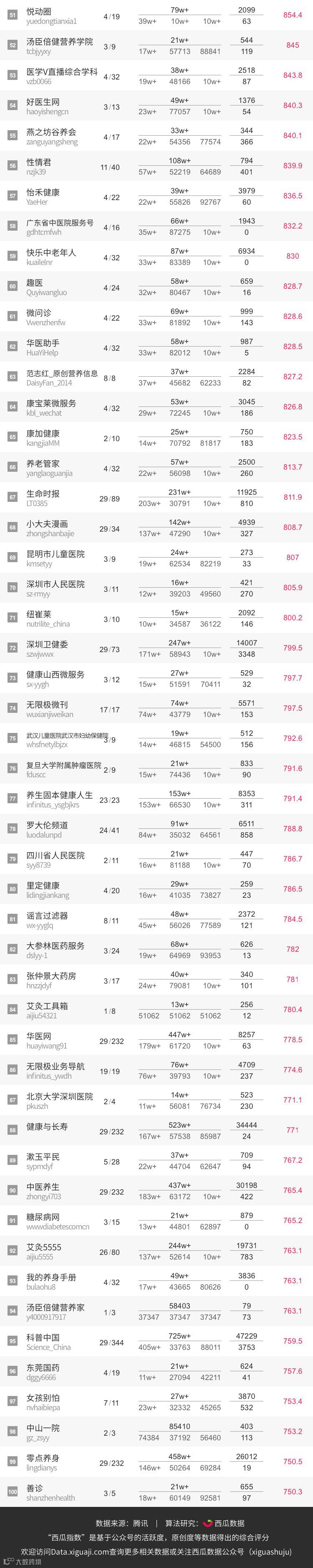 在本份月榜中除了西瓜指数外,还会显示指定周期内公众号发文次数、发文篇数、总阅读数、头条总阅读数、平均阅读数、最高阅读数、总点赞数、总留言数等数据。这些数据显示更加方便大家直观对比公众号之间的数据。