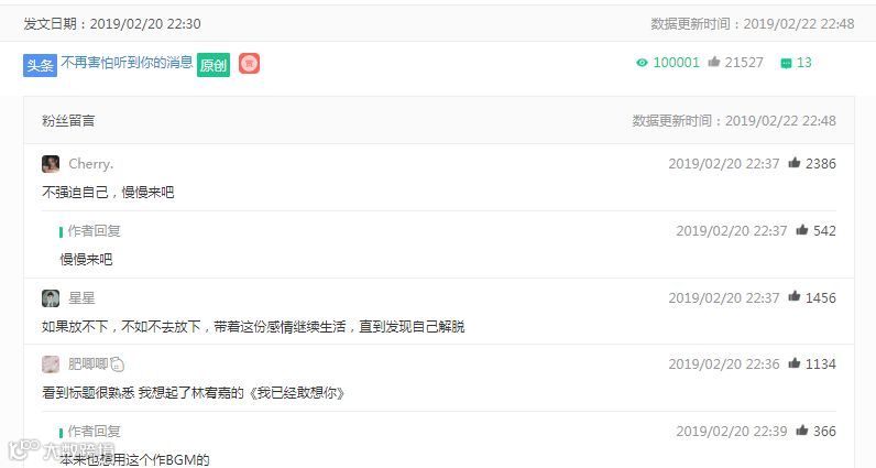 虽然这个号放出来的留言并不多,但每一篇的留言点赞数都高达1000以上,但这个公众号实际上只是2018年8月28日注册的,距今还不到1年时间,但凭借优质内容迅速攀至西瓜数据2月榜前十强的位置。