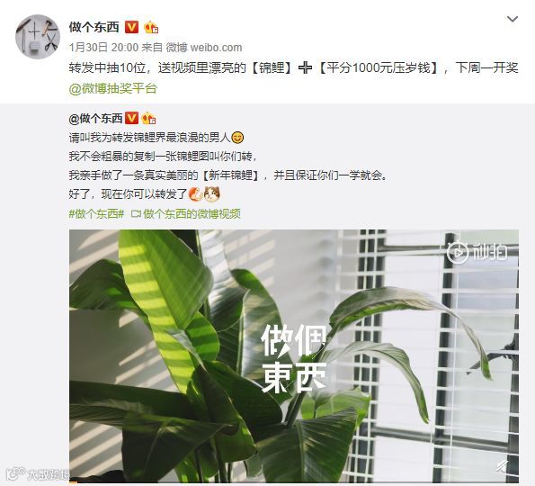 微博「@做个东西」是一个手工类视频博主,每次激起大家转发冲动的是会送出视频中手工的材料包。大家对于交作业的热情积极又高涨。