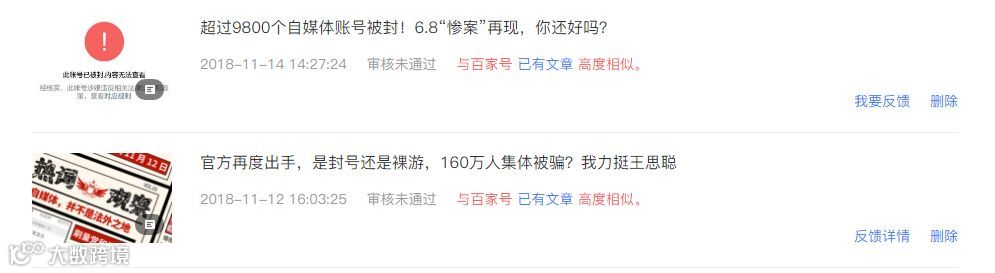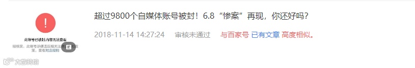 百家号的误判分为两种情况,一是出现误判并且扣分;二是只是出现误判不扣分,比如西瓜君所遇到的情况,发布文章时发现百家号已有高度相识的文章不给予发布。这类只是审核不通过并不扣分。