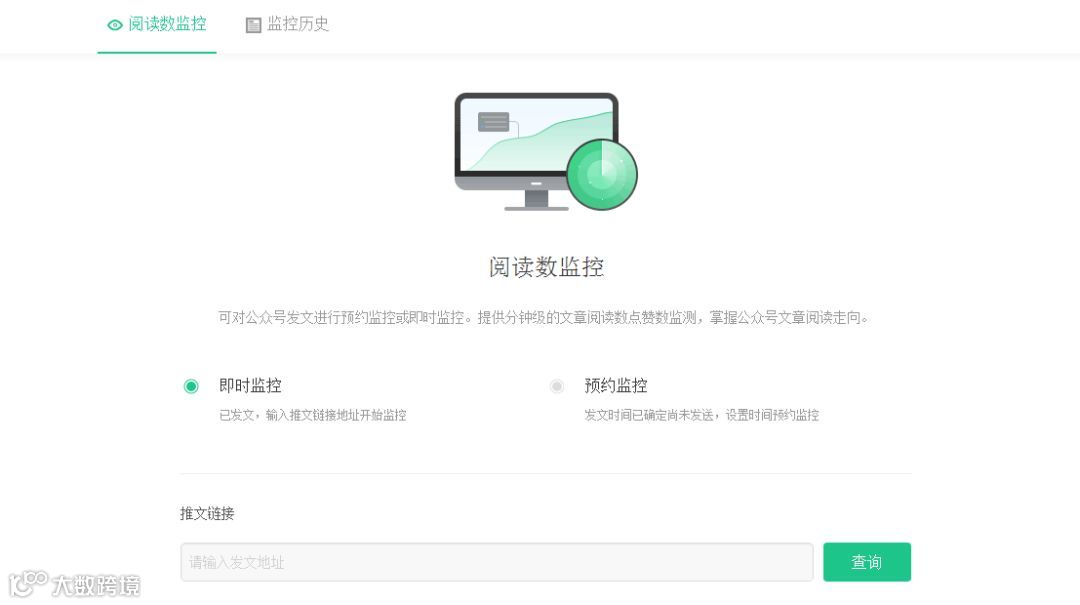 用西瓜数据“数据监控”功能,就能对公众号发文进行预约监控或即时监控,文章阅读数点赞数监测可达分钟级。