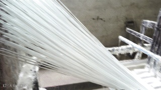 肖师傅:“呃,最大的困难应该就是以前的玻纤材料比较差,大部分的人用高碱纱,且做纱的工艺又不成熟,材料的品质相对较差,这边刚拉出来后面很大一部分会断掉,经常晚上加班人工切割制品赶出来交货。”