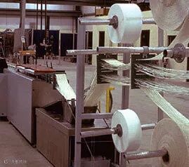 目前生产中经常用到的2400TEX,4800TEX连续无捻玻璃纤维粗纱,在使用过程中,要求纤维具有良好的成带性,集束性,含水率要低,张力均匀,能够迅速被树脂浸透,线密度均匀,外观颜色一致。在生产过程中,如发现有纱束发黄,黑点等现象,则判为不合格,应将其去除。纤维使用时间最好不超过6个月。特殊情况下加入缝编毡,加入后可以提供一定的产品张力和产品整体强度。
