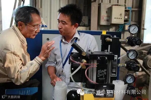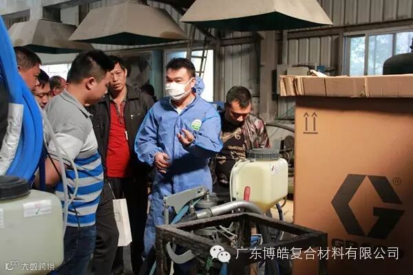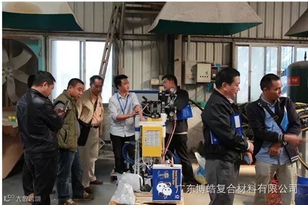 技术人员为学员讲解固瑞克纤维、胶衣树脂喷射设备