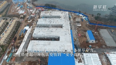 10天时间,建筑工地上的每个工人、每台装备,就像一颗颗螺丝钉、一个个零部件,紧密扣在一起,以不可思议的速度搭建,抗击疫情的“安全岛屿”。