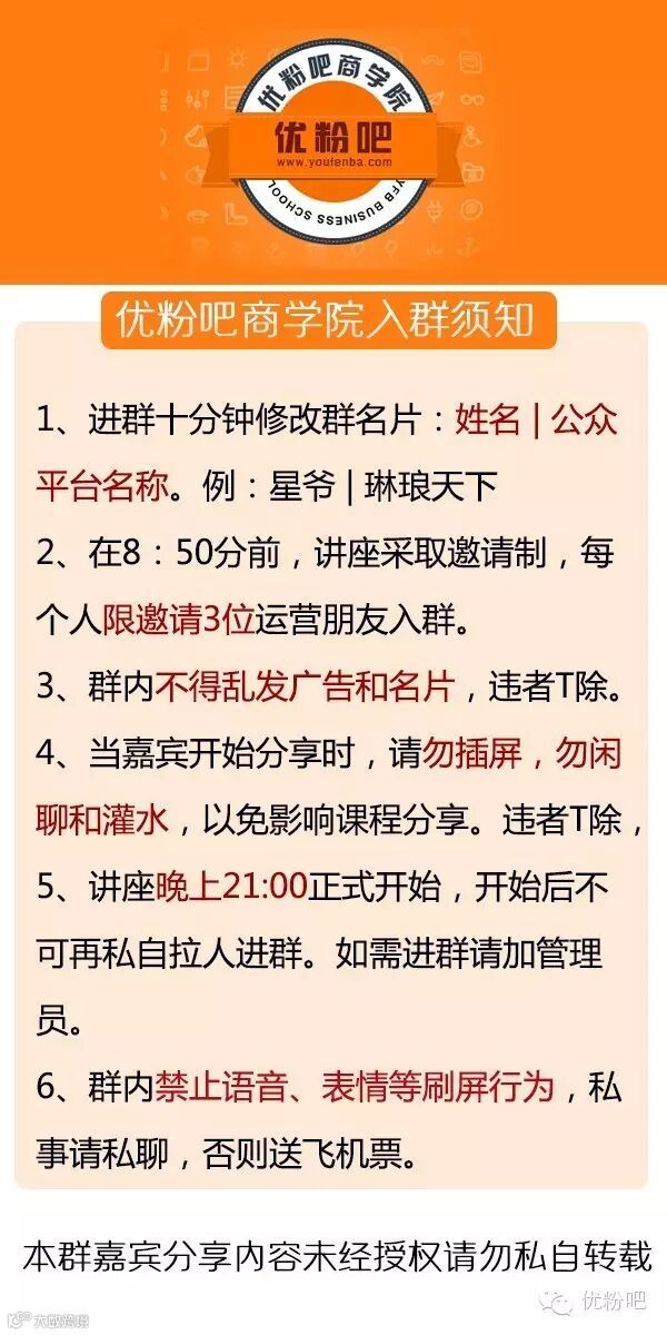 3.优粉吧直播群邀请时间,讲座当天下午18:00。