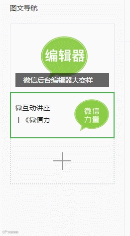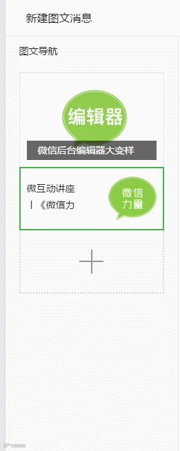 此区域主要展示图文封面、图文标题,并支持将图文上下移动位置,这意味临时增加新闻头条再也不用重新建图文了。