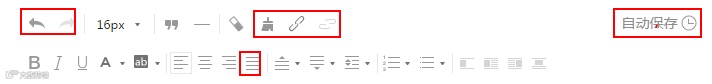 新版编辑器在工具栏中也下了不少功夫,新增:撤销、重做,格式刷、两端对齐。