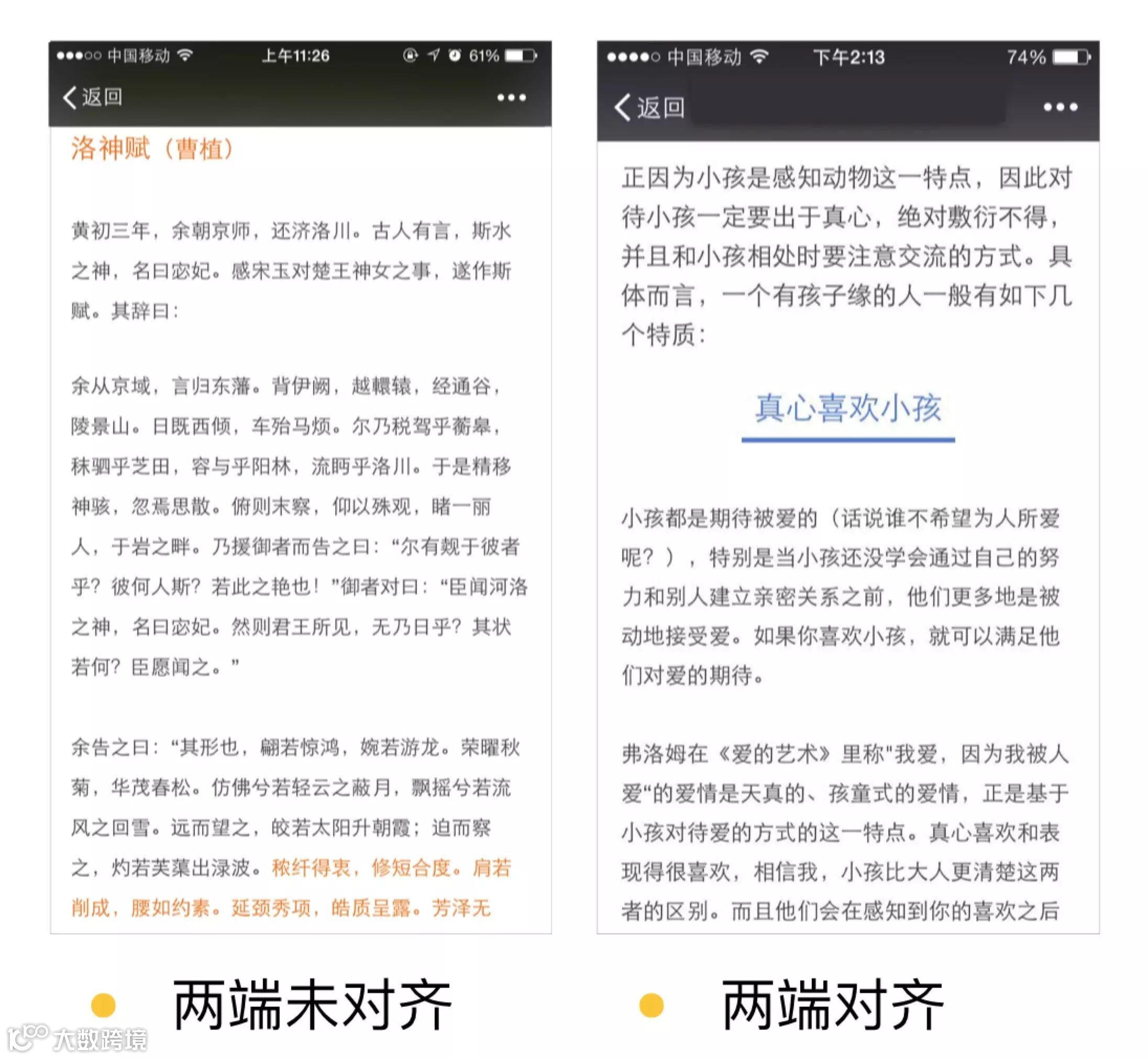 原来的编辑器工具栏上只有居左、居中、居右,并没有两端对齐,想要使用还需要使用右键,一级级找到。这次将编辑区域内右键选择两端对齐方式被提到工具栏中,方便对齐方式。下图可以看出,如果不使用两端对齐,右侧文字参差不齐,看起来很不整齐。