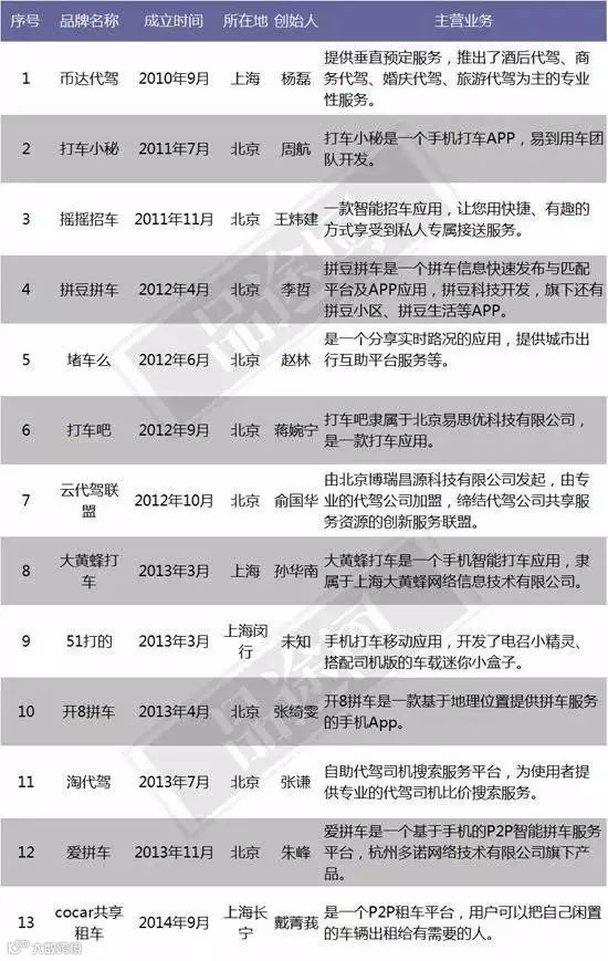 1、大佬初现,格局已成。对于初创公司来说,简直是内忧外患。滴滴快的合并后如猛虎,更是打破目前创业公司融资最高纪录。来自国际巨头Uber的威胁,挂着拼车的羊头,却做着专车的生意,直接威胁拼车和专车两条产品线。
